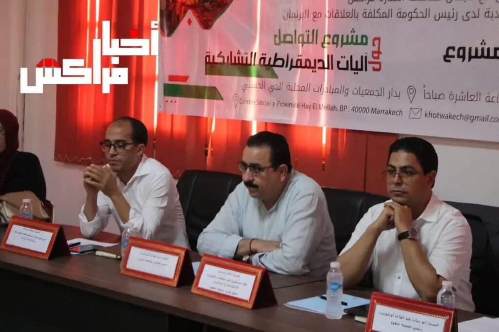 جاء تصريح خالد وخشي على هامش اللقاء الختامي لعرض نتائج مشروع التواصل حول آليات الديمقراطية التشاركية والنهوض بالمشاركة المواطنة، موضوع اتفاقية الشراكة المبرمة بين الوزارة المنتدبة لدى رئيس الحكومة المكلفة بالعلاقات مع البرلمان من جهة وجمعية خطوة من جهة ثانية، اللقاء الذي تم تنظيمه بدار الجمعيات والمبادرات المحلية الحي الحسني يومه السبت 21 يونيو 2025، بحضور رئيس مجلس مقاطعة المنارة بمراكش وخبراء وفاعلين في مجال الديمقراطية التشاركية.