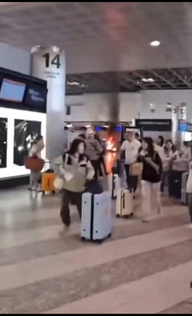 وأظهرت مقاطع فيديو من المطار تصاعد ألسنة اللهب ودخان أسود من داخل المبنى، كما ظهر بعض المسافرين وهم يفرون من المكان بعد تصاعد أعمدة الدخان في المبنى.