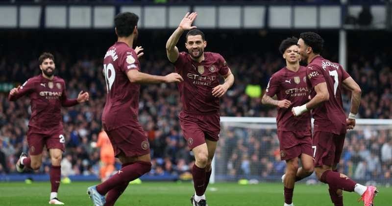 قطع مانشستر سيتي خطوة أخرى نحو التأهل لدوري أبطال أوروبا لكرة القدم الموسم المقبل بعدما سجل نيكو أوريلي وماتيو كوفاتشيتش هدفين في الدقائق الأخيرة ليقودا الفريق للفوز 2- صفر على مضيفه إيفرتون في الدوري الإنجليزي الممتاز باستاد غوديسون بارك يوم السبت.