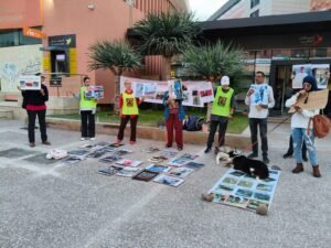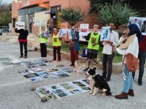 و قد عرفت هذه الوقفة رفع شعارات تستنكر فيها قتل الكلاب الضالة و رميها بالشوراع بطريقة تنعدم فيها مظاهر الرفق بالحيوانات.