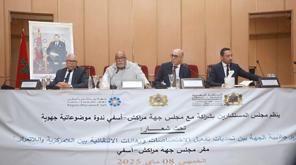 وتمحورت أشغال الندوة حول موضوعين رئيسيين يهمان “تعزيز الجاذبية الترابية للجهة بين تحديات ممارسة الاختصاصات ورهانات التمويل”، و”تحديات الانسجام بين اللامركزية واللاتمركز، والالتقائية بين الإستراتيجيات القطاعية والسياسات العمومية الترابية”.