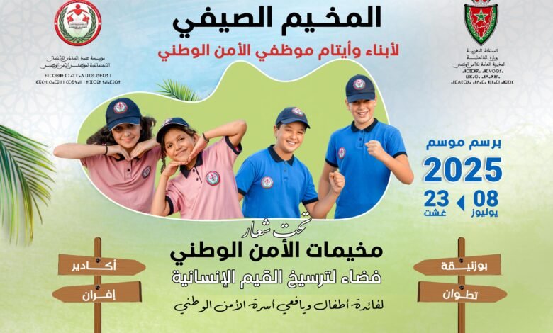 تحت شعار: “مخيمات الأمن الوطني: فضاء لترسيخ القيم الإنسانية”، فتحت مؤسسة محمد السادس للأعمال الاجتماعية لموظفي الأمن الوطني، خلال الأسبوع الجاري، أبواب التسجيل أمام أطفال وأيتام موظفي الأمن الوطني من أجل الاستفادة من فعاليات النسخة السنوية للمخيمات الصيفية 2025، والتي سيتم تنظيمها خلال الفترة الممتدة ما بين 08 يوليوز و23 غشت 2025، بمجموعة من مراكز الاصطياف بمدن أكادير وبوزنيقة وتطوان وإفران.