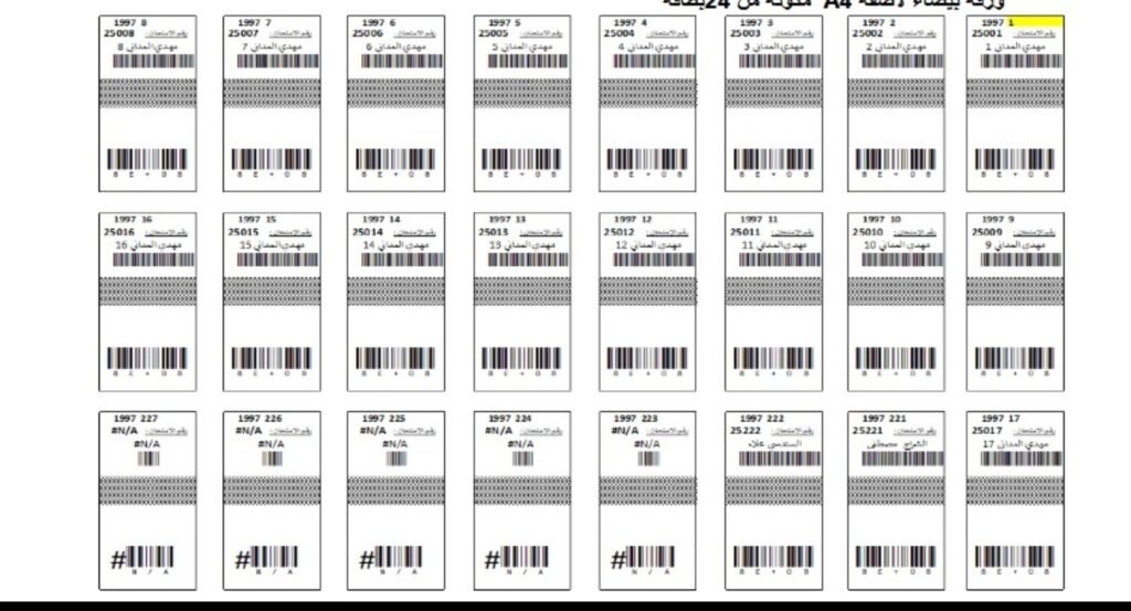 هذه البطائق، تستخدم لتشفير أوراق الإجابة ببيانات سرية تضم الاسم الكامل، رقم الامتحان، رمز خاص بالكتابة، ورمز سري لورقة الإجابة إذ يتم تثبيت كل ملصق بعناية على شريط التقاطع بين جزئي الورقة، مع ضمان ترتيبه حسب أرقام الامتحان، وتسليمه داخل أظرفة مؤمنة إلى المركز الإقليمي، في مسار رقمي وتنظيمي بالغ الدقة