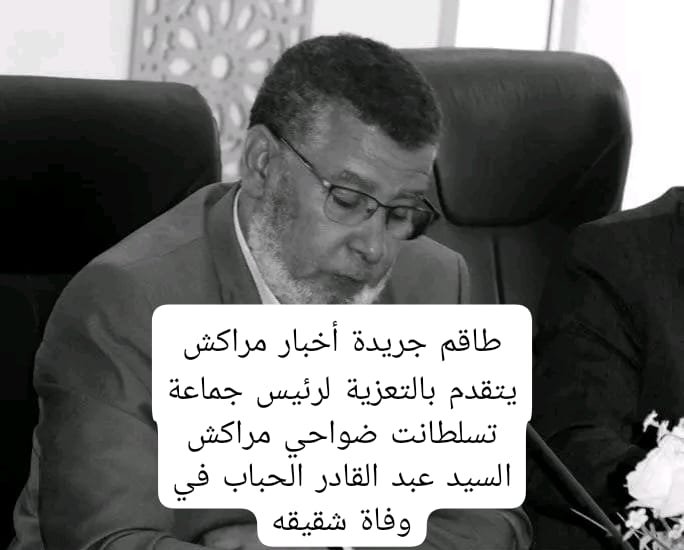 بقلوبٍ مؤمنةٍ بقضاءِ اللهِ وقَدَره،يتقدم طاقم جريدة أخبار مراكش بأحر التعازي إلى رئيس جماعة تسلطانت ضواحي مدينة مراكش السيد عبد القادر الحباب في وفاة شقيقه.