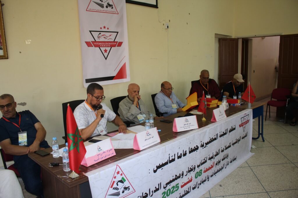 نظمت اللجنة التحضيرية جمعا عاما لتأسيس الهيئة الوطنية للسلامة الطرقية لكتاب و تجار و مهنيي التجار بالمغرب يوم الجمعة 8 غشت 2025، بقاعة دار الجمعيات و المبادرات المحلية بالحي الحسني بمقاطعة المنارة مراكش.