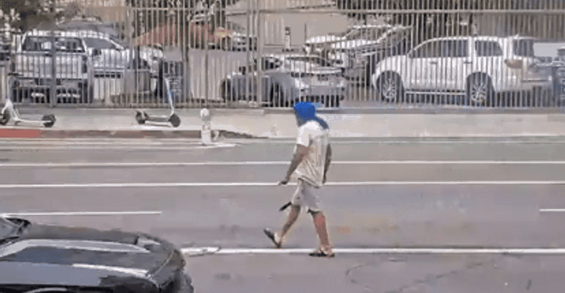 وبحسب الشرطة، فإن سينغ أوقف سيارته فجأة وسط تقاطع مزدحم بين شارعي فيغيروا وأولمبيك، وبدأ يلوّح بساطور يبلغ طوله نحو 60 سم بطريقة عدوانية، مهددًا المارة.
