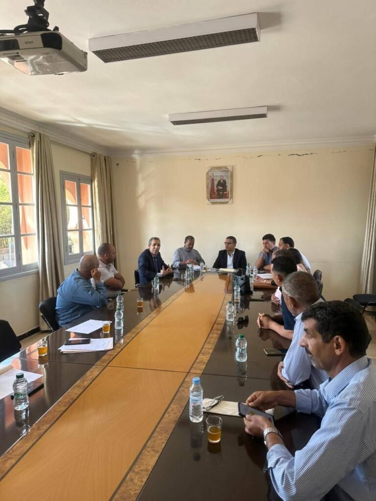 مراكش:عبد الرحيم العميم رئيس جماعة سعادة يعقد اجتماعا مع مدير الشبكات المائية بالشركة الجهوية متعددة الخدمات مراكش آسفي حول توزيع الماء الصالح للشرب على مستوى الجماعة