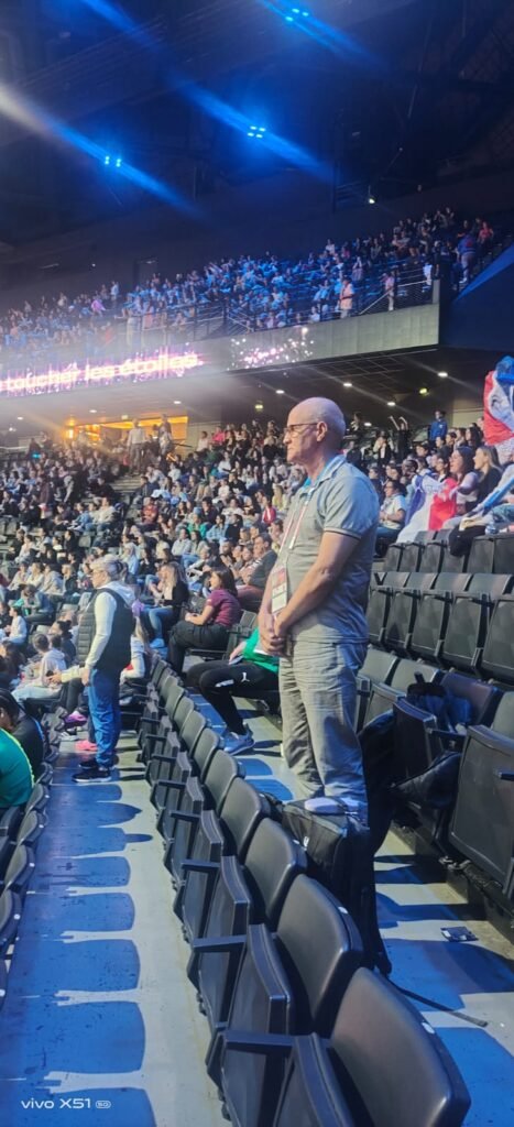 عبد الصادق بيطاري رئيس الجامعة الملكية لرياضة الجمباز يحضر لمنافسات كأس العالم للجمباز المنظمة بباريس من خلال مشاركة المغرب في هذه التظاهرة العالمية