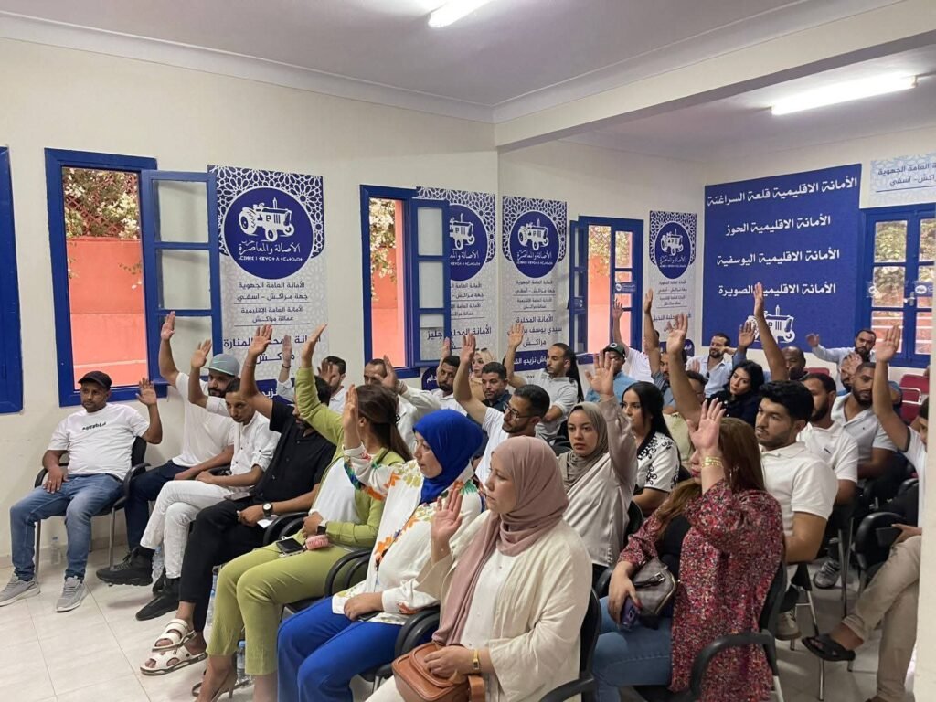 اليوم بجهة مراكش-آسفي يتم الإنتهاء من برنامج الجموع الانتدابية الإقليمية العامة، حيث تم تنظيم الجمع العام لانتداب شباب عمالة مراكش للمؤتمر الوطني الثاني لشبيبة الحزب ببوزنيقة أيام 26-27 شتنبر 2025.