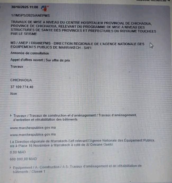 في خطوة نحو تأهيل البنية الصحية لإقليم شيشاوة، يستعد المستشفى الإقليمي لاحتضان مشروع صحي ضخم يهدف إلى تأهيل وتوسعة مرافقه وبناء منشآت طبية جديدة، إلى جانب أعمال الصيانة والتجديد الشاملة لمختلف البنايات، وذلك بميزانية تفوق 3 مليارات و700 مليون سنتيم.
