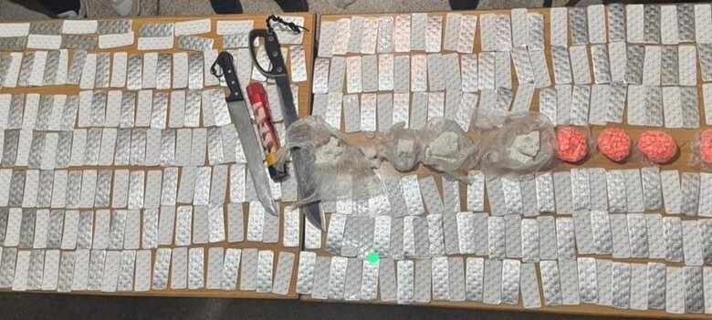 وقد جرى توقيف المشتبه بهما متلبسين بحيازة وترويج المخدرات، حيث أسفرت عملية الضبط والتفتيش عن العثور بحوزتهما على 6054 قرصا مخدرا، من بينها 1000 قرص مهلوس من نوع إكستازي و5054 قرصا طبيا مخدرا من نوع ريفوتريل، علاوة على 328 غراما من الكوكايين وسلاحين أبيضين من الحجم الكبير.