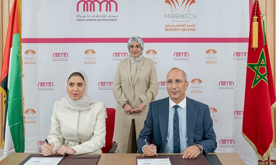 في إطار تعزيز التعاون الأكاديمي والعلمي بين المملكة المغربية ودولة الإمارات العربية المتحدة، شهدت جامعة القاضي عياض بمراكش، مؤخرا حفل توقيع اتفاقية شراكة وتعاون مع مؤسسة “نماء للارتقاء بالمرأة”، وذلك بحضور سمو الشيخة جواهر بنت محمد القاسمي، قرينة صاحب السمو حاكم الشارقة ، رئيسة مجلس الشارقة للأسرة والمجتمع.