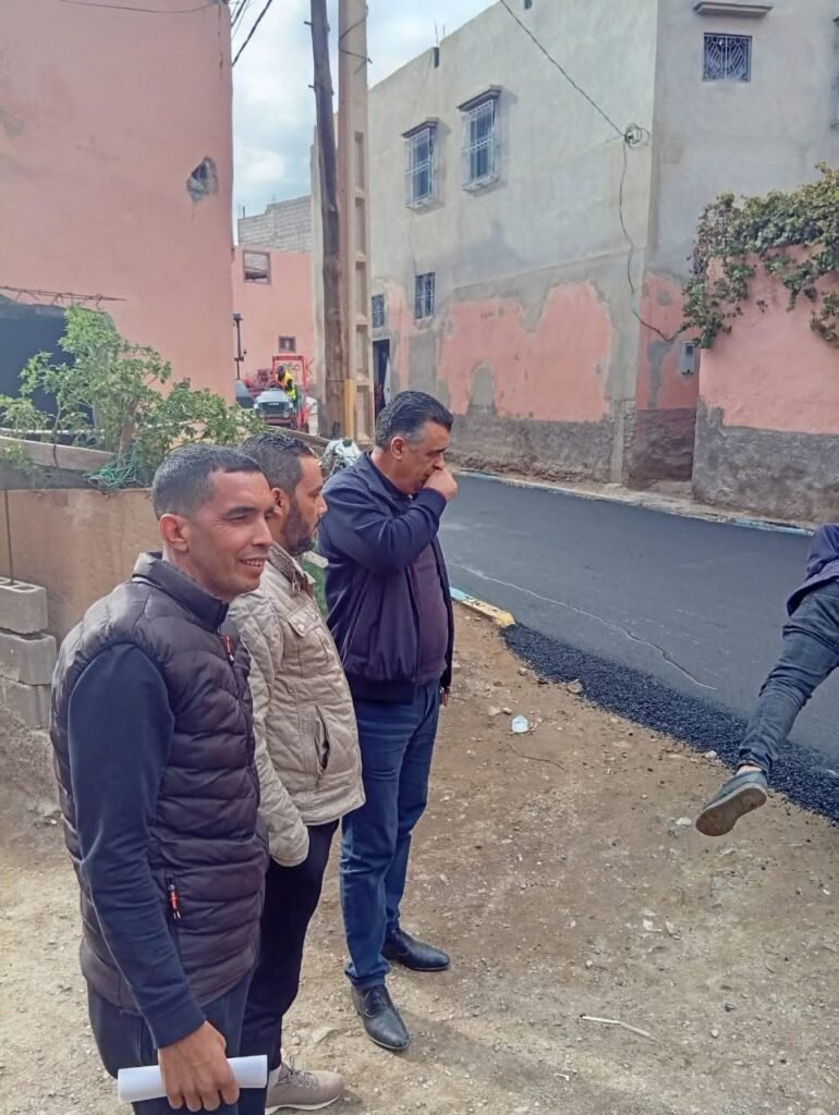 إقليم الرحامنة:طريق طاها رئيس مجلس جماعة سيدي بوعثمان يشرف على التتبع الميداني لأشغال تعبيد الطرق ببعض الأحياء