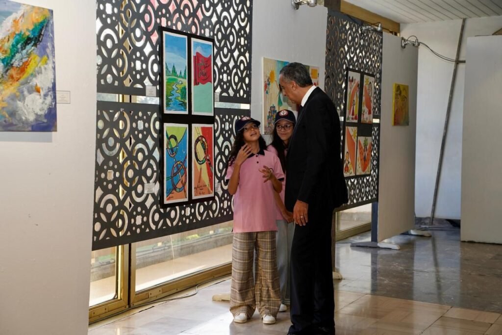 وإلى جانب لوحات موظفي الشرطة التي تتميز بالحرفية والمستوى الفني الرفيع، شهد فضاء الفنون التشكيلية عرض لوحات فنية من إنجاز مجموعة من أبناء الأمن الوطني المستفيدين من المخيمات الصيفية التي نظمتها مؤسسة محمد السادس للأعمال الاجتماعية لموظفي الأمن الوطني، وهي الابداعات التي تجمع بين عفوية الطفولة والموهبة الفنية الناشئة.
