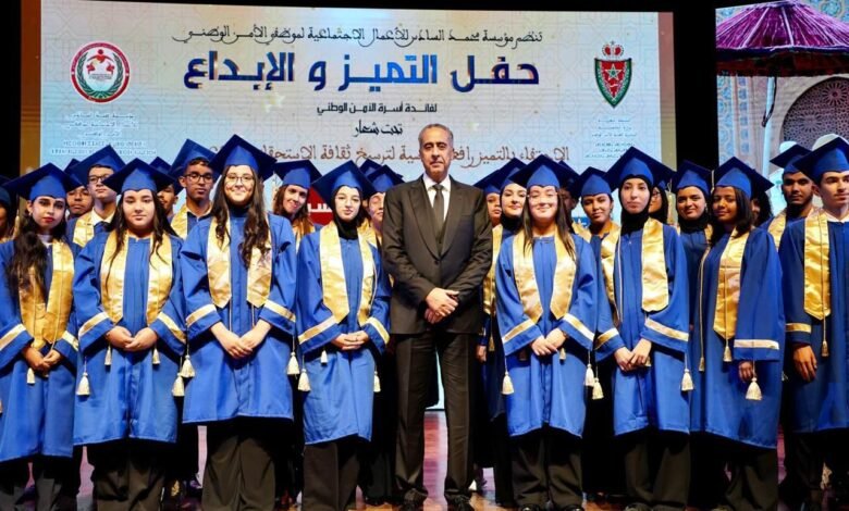 وقد عرف هذا الحفل تكريس التقليد السنوي المتعلق بتكريم أبناء وأيتام أسرة الأمن الوطني، ممن بصموا على نجاح دراسي متميز، وحصلوا على أعلى المعدلات الدراسية في امتحانات الباكالوريا برسم الموسم الدراسي 2025/2024، حيث تم بالمناسبة تسليمهم منحا وجوائز مالية تحفيزية ومشجعة على مواصلة التعليم الجامعي.