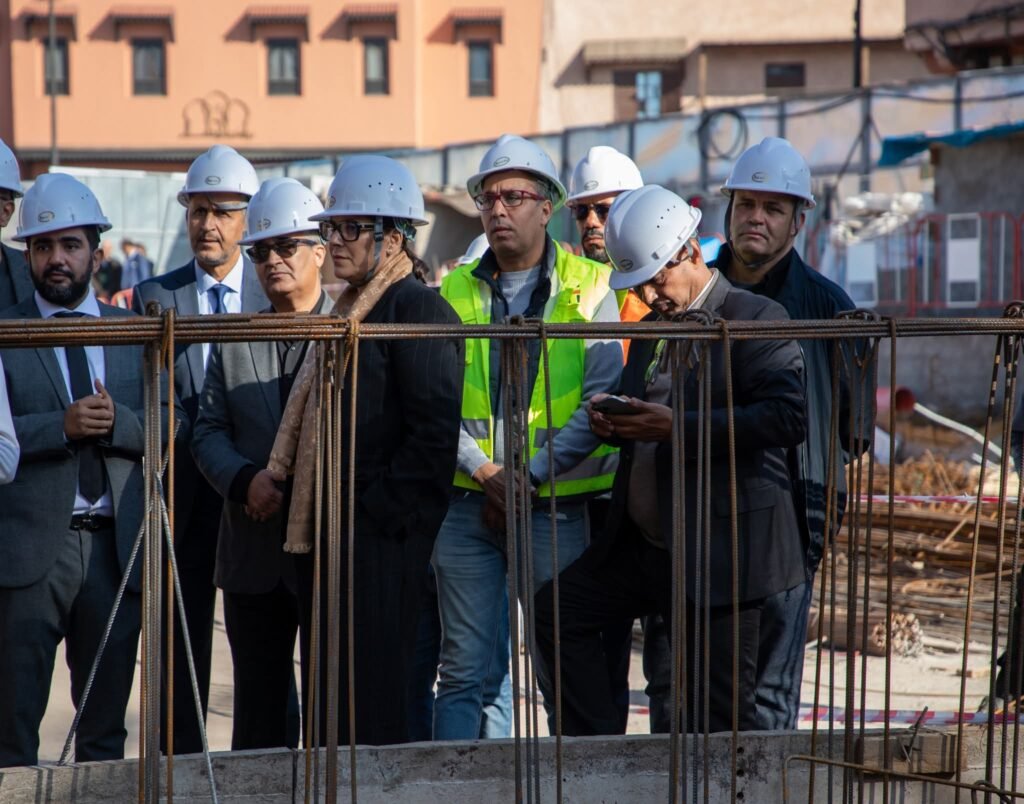 مراكش:فاطمة الزهراء المنصوري رئيسة المجلس الجماعي تقوم بزيارة تفقدية لمشروع بناء موقف السيارات بعرصة المعاش