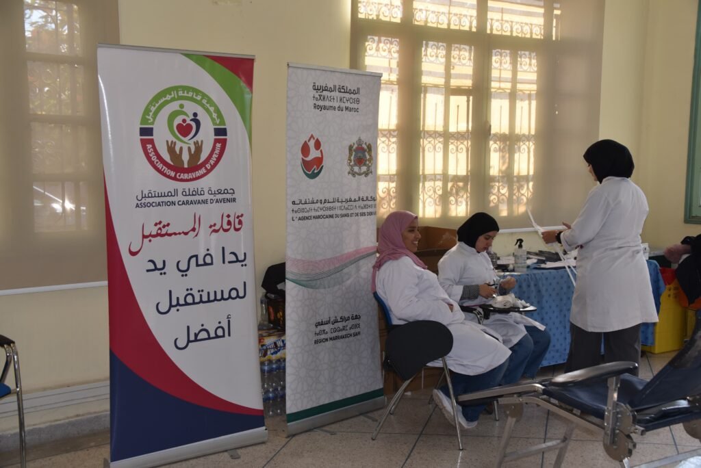 مراكش:جمعية قافلة المستقبل بشراكة مع مندوبية الصحة و الوكالة المغربية الدم و مشتقاته و مجلس مقاطعة المنارة تنظم حملة التبرع بالدم لإنقاذ حياة ضحايا الفيضانات بآسفي