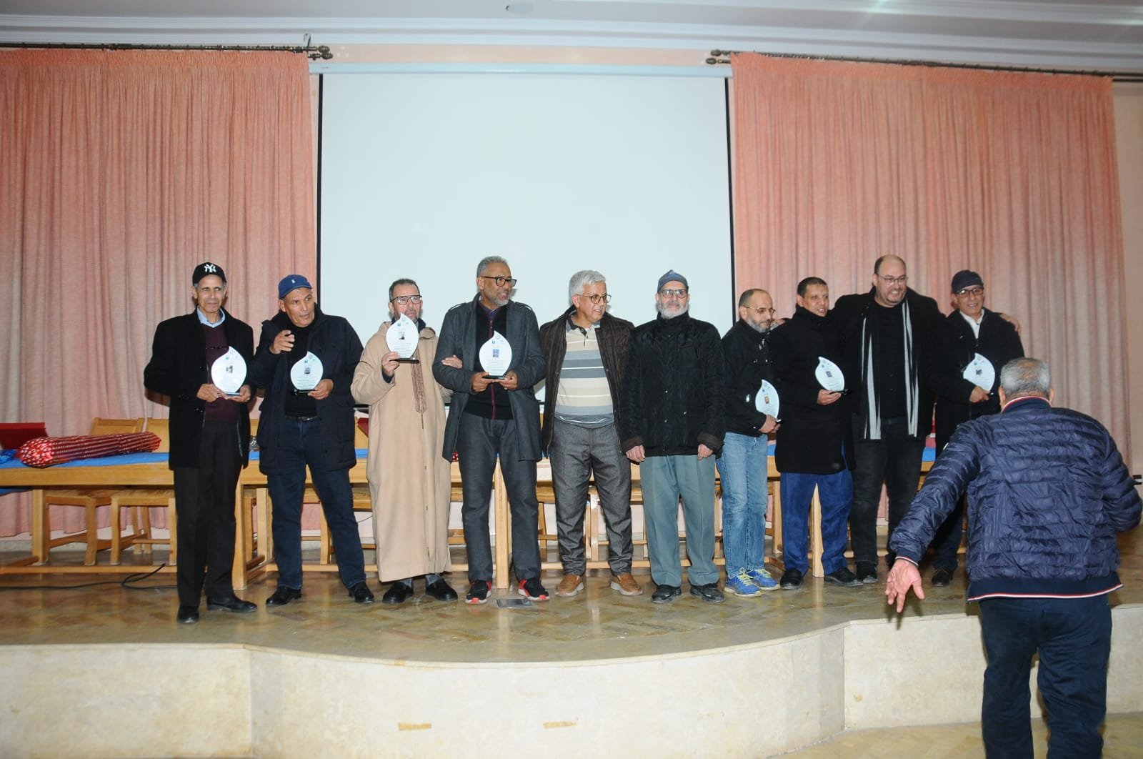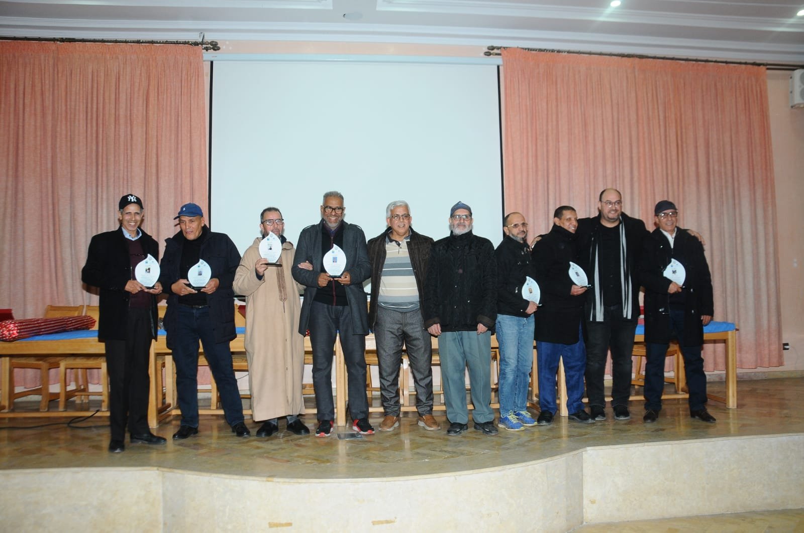 وقد كانت بداية الحفل حوالي الساعة السادسة والنصف مساء، وبعد الكلمة الترحيبية وتلاوة آيات بينات من الذكر، تناول الكلمة بعض أعضاء المكتب النقابي وبعض المسؤولين الإداريين ذكروا خلالها بمناقب المحتفى بهم والدور الذي اضطلعوا به خلال مشوارهم لمهني داخل الشركة.