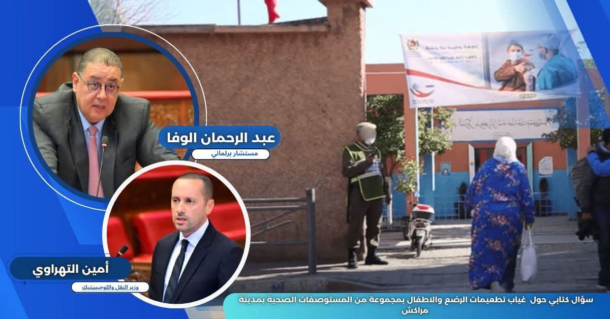 وجه السيد عبد وافا المستشار البرلماني بمراكش سؤالا كتابيا إلى السيد وزير الصحة و الحماية الإجتماعية حول موضوع غياب تطعيمات الرضع و الأطفال بمجموعة من المستوصفات الصحية بمدينة مراكش.