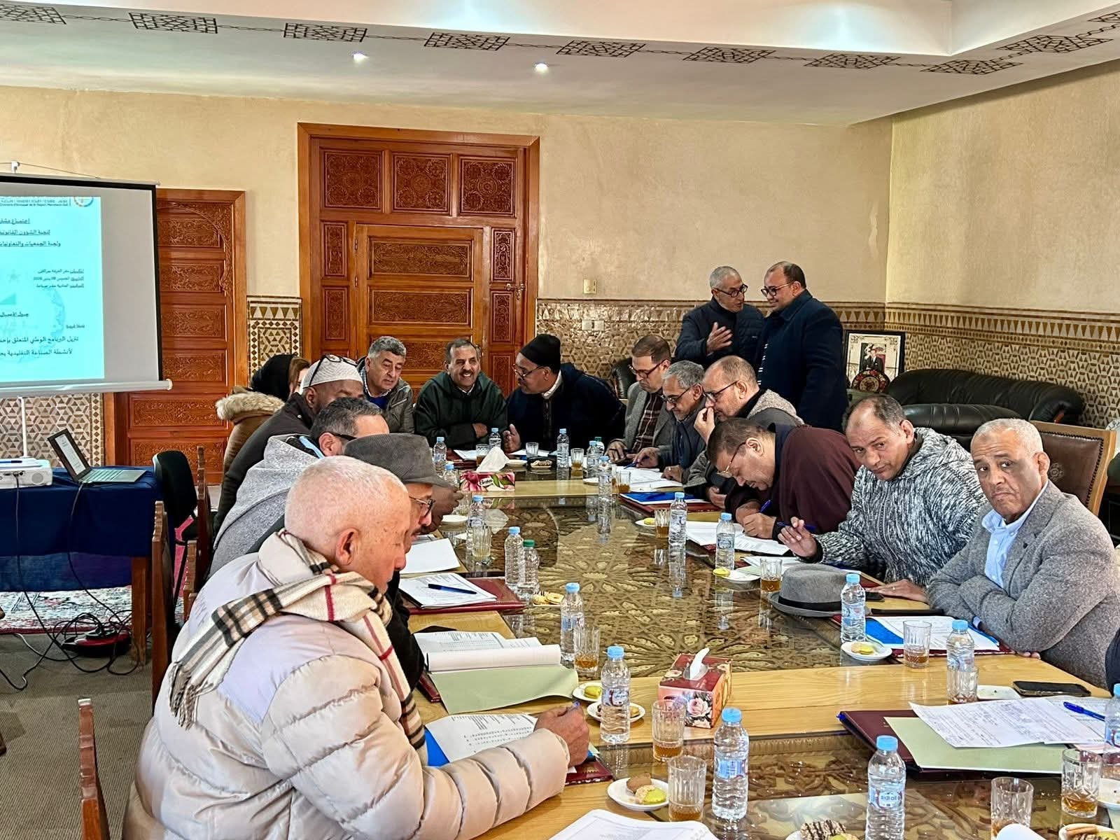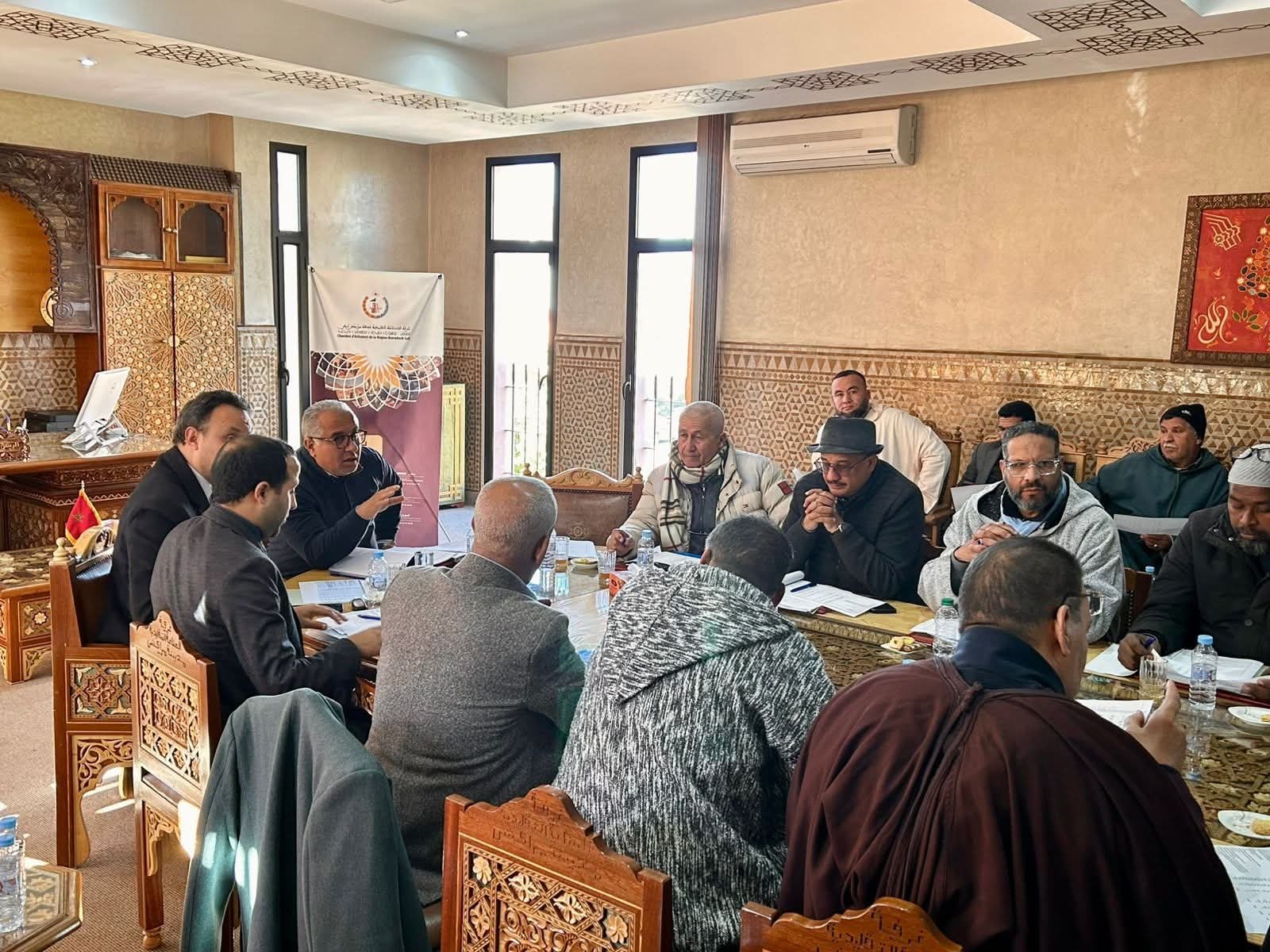 مراكش:شميس رئيس غرفة الصناعة التقليدية لجهة مراكش آسفي يترأس اجتماعا لمناقشة الإجراءات لتنفيذ البرنامج الوطني لإحداث الهيئات الحرفية على مستوى الجهة