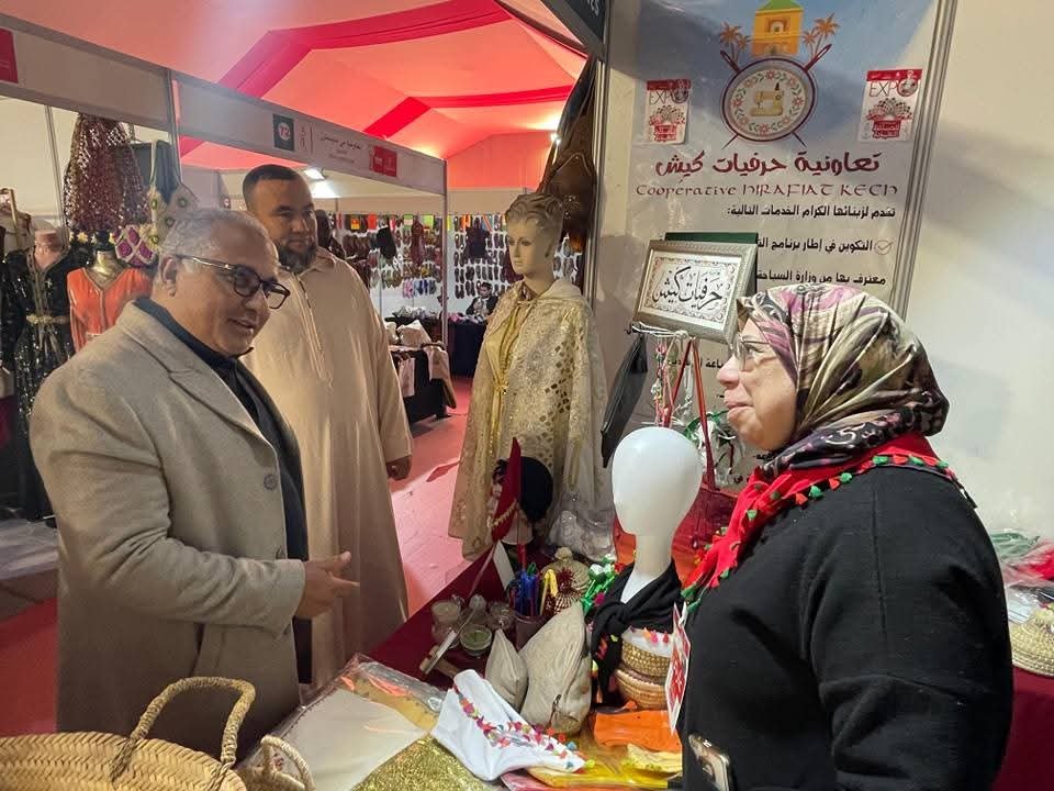 مواصلةً للزيارات الميدانية للمعرض الجهوي للصناعة التقليدية بمدينة مراكش، قام السيد رئيس غرفة الصناعة التقليدية لجهة مراكش–آسفي، مرفوقًا ببعض السادة أعضاء الجمعية العامة للغرفة وأطرها الإدارية، بزيارة ميدانية للصانعات والصناع التقليديين والتعاونيات الحرفية المشارِكة في المرحلة الثانية من المعرض الجهوي للصناعة التقليدية بالمدينة الحمراء مراكش.