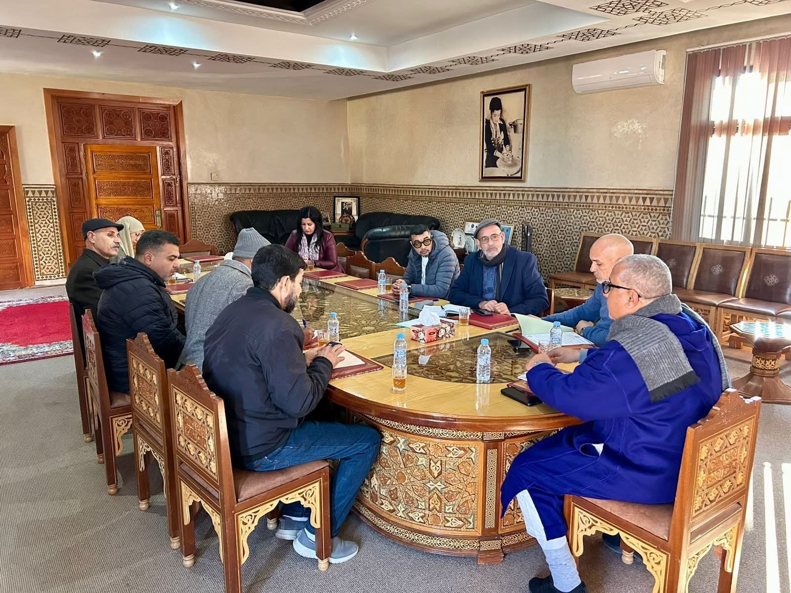 عقد السيد حسن شميس رئيس غرفة الصناعة التقليدية لجهة مراكش–آسفي، يوم الجمعة 16 يناير 2026، على الساعة الحادية عشرة صباحا، بمقر الغرفة بمراكش، اجتماعا مع مهنيي قطاع الزليج البلدي، بحضور السيد النائب الأول لرئيس الغرفة والسيدة مديرة الغرفة.