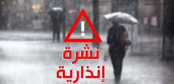 نشرة إنذارية:زخات وأمطار قوية ورياح عاصفية من الجمعة إلى السبت بعدد من مناطق المملكة