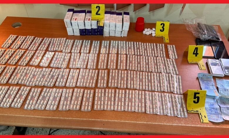 وقد جرى توقيف المشتبه فيه وهو في حالة تلبس بحيازة وترويج المخدرات على متن سيارة خفيفة، حيث أسفرت عملية الضبط والتفتيش عن العثور بحوزته على 1120 قرص طبي مخدر وجرعات من مخدر الكوكايين، علاوة على ميزانين إلكترونيين ومبلغ مالي من متحصلات ارتكاب هذه الأفعال الإجرامية.