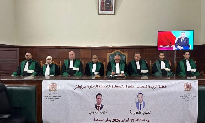 احتضنت المحكمة الابتدائية الإدارية بمراكش، يوم الثلاثاء 17 فبراير 2026، جلسة رسمية خُصصت لتنصيب قاضيين جديدين، وذلك في إطار تعزيز الموارد البشرية بالجهاز القضائي والرفع من نجاعة الأداء داخل المحاكم الإدارية.