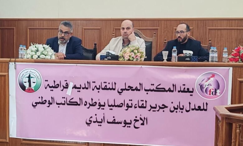 شهدت قاعة المحكمة الإبتدائية بابن جرير، يومه الثلاثاء 31 مارس 2026 لقاءً تواصلياً نظمته النقابة الديمقراطية للعدل، بحضور الكاتب العام للنقابة، الأخ يوسف إيذي، الذي أشرف على تأطير هذا الموعد التنظيمي الهام.