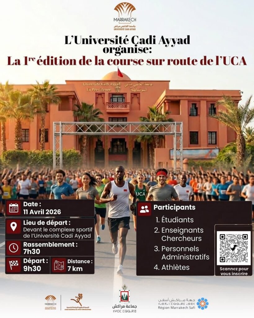 في إطار دينامية الأنشطة الرياضية وتعزيز الإنفتاح على محيطها الجامعي والمجتمعي، تستعد جامعة القاضي عياض بمراكش لتنظيم الدورة الأولى من السباق على الطريق، وذلك يوم 11 أبريل 2026، في تظاهرة رياضية تهدف إلى تشجيع الممارسة الرياضية وترسيخ ثقافة النشاط البدني داخل الوسط الجامعي.