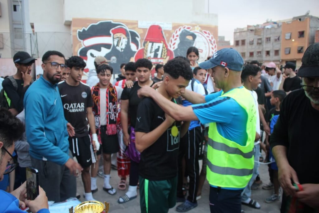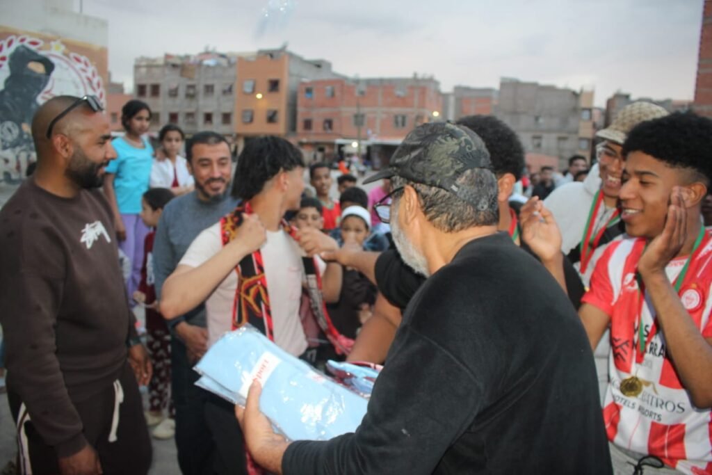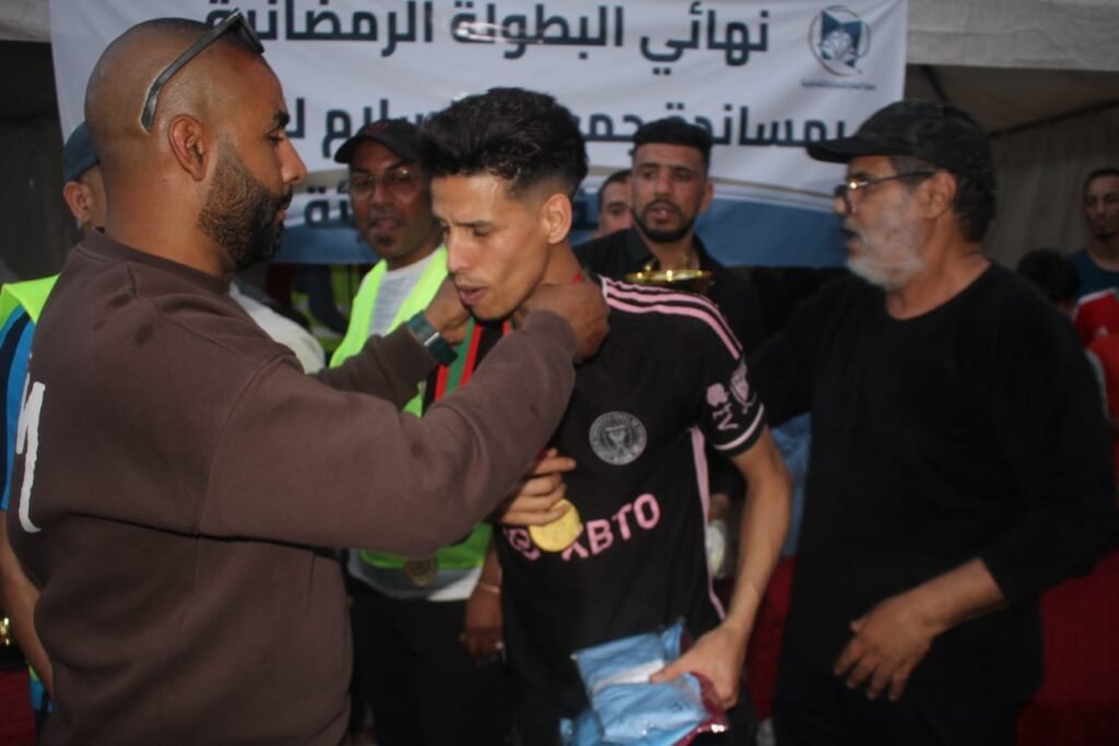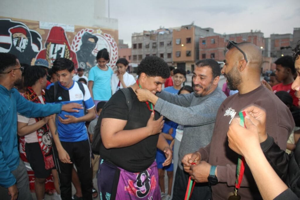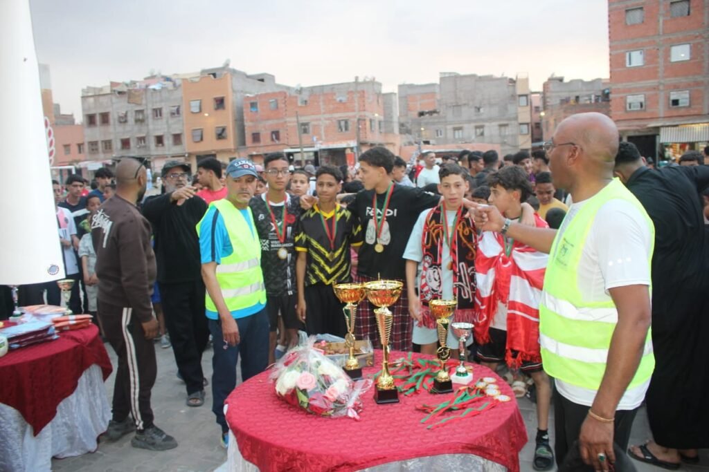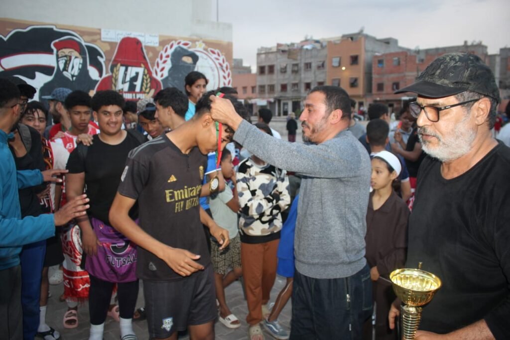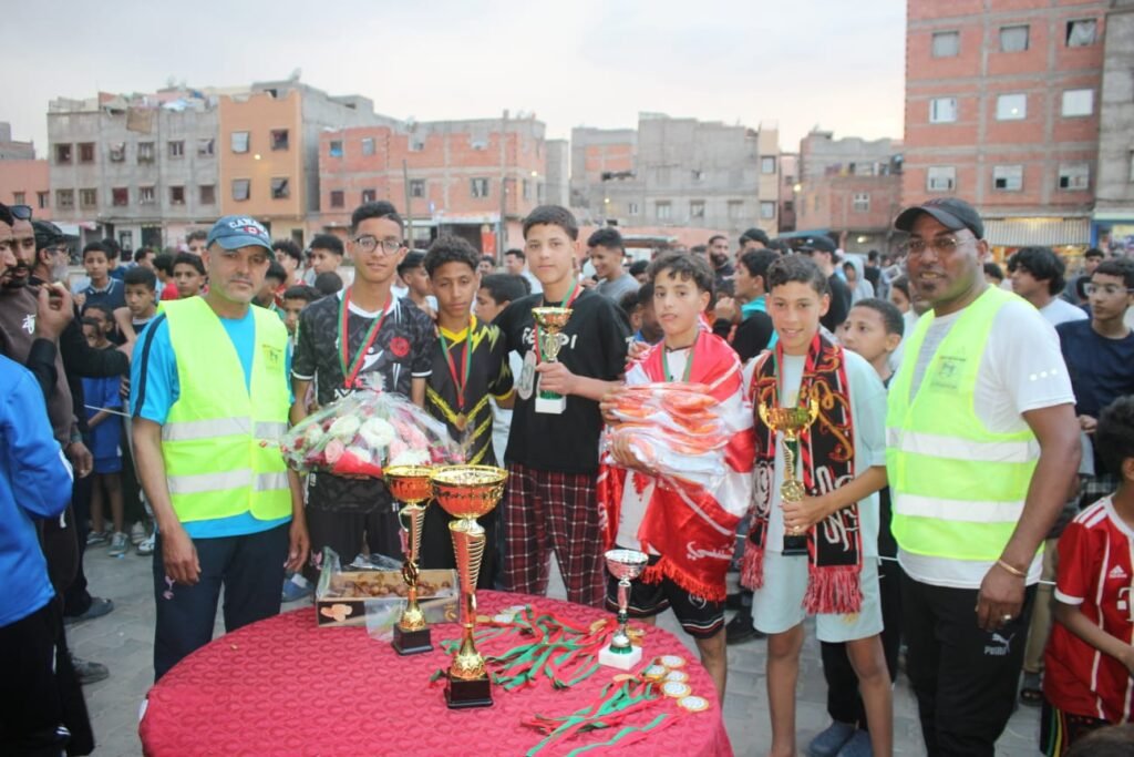 و قد تم توزيع الجوائز و الميداليات على الفرق الفائزة بالدوري الرمضاني لكرة القدم بحي السراغنة.