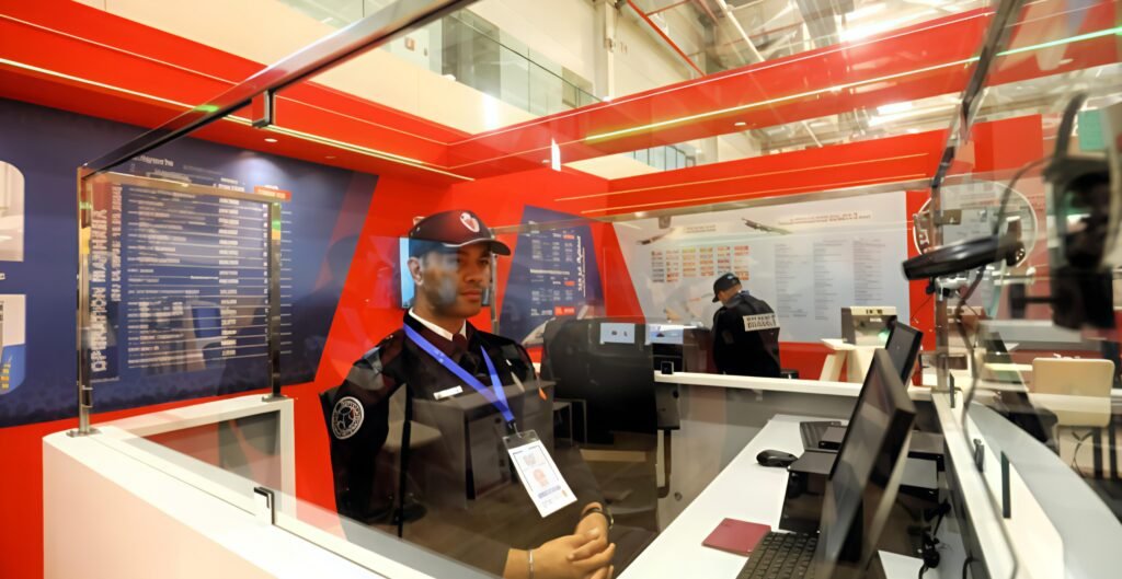 ويعرض الرواق مجموعة من التجهيزات المتطورة، من ضمنها بوابة الكشف الأمني وأجهزة “السكانير” الخاصة بتفتيش الأمتعة اليدوية، إلى جانب أجهزة عالية الدقة لرصد المواد المتفجرة والمخدرات.