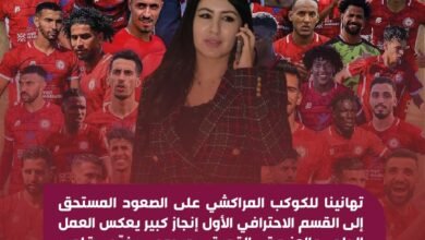 النائبة البرلمانية الدكتورة حنان أتركين تهنئ فريق الكوكب المراكشي لكرة القدم بمناسبة صعوده للقسم الإحترافي الأول