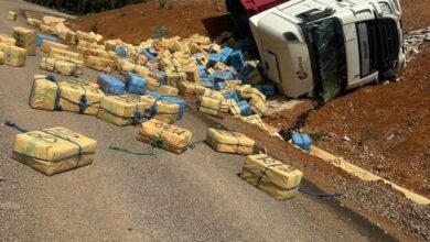 انقلاب شاحنة محمّلة بالمخدرات بين العرجات وسيدي علال البحراوي