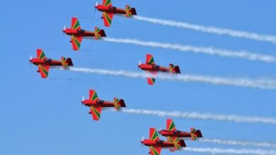 عيد العرش .. فرقة “المسيرة الخضراء” للطيران الاستعراضي تزين سماء شاطئ المضيق بلوحات فنية فريدة وبديعة