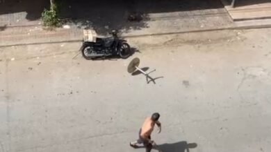 انتشر عبر مواقع التواصل الاجتماعي مقطع فيديو يظهر أحد الأشخاص في حالة هيجان يقوم بتخريب ممتلكات الغير على مستوى دوار…