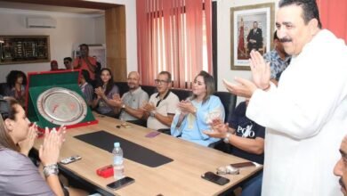 السيد عبد الواحد الشافقي رئيس مقاطعة المنارة مراكش رفقة أعضاء المجلس يستقبل سيدات الكوكب المراكشي لكرة السلة بعد إحرازهن لقب بطولة القسم الممتاز